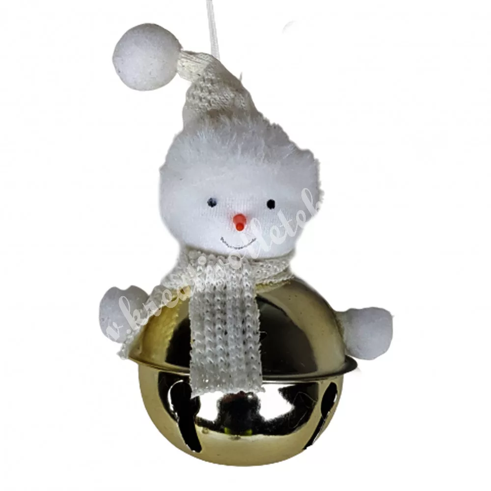 Akasztós dísz, csengő hóember, arany, 7x12 cm