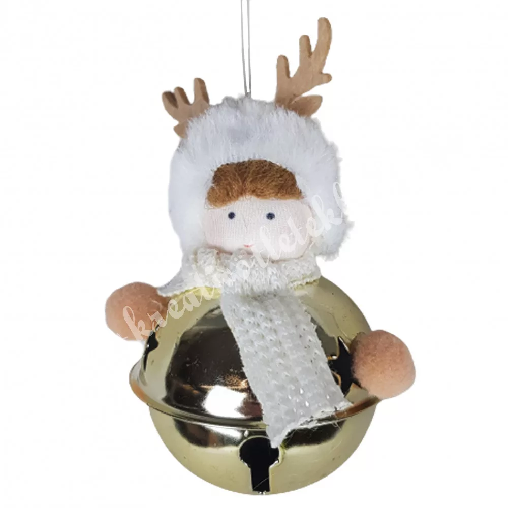 Akasztós dísz, csengő kislány, arany, 7x12 cm