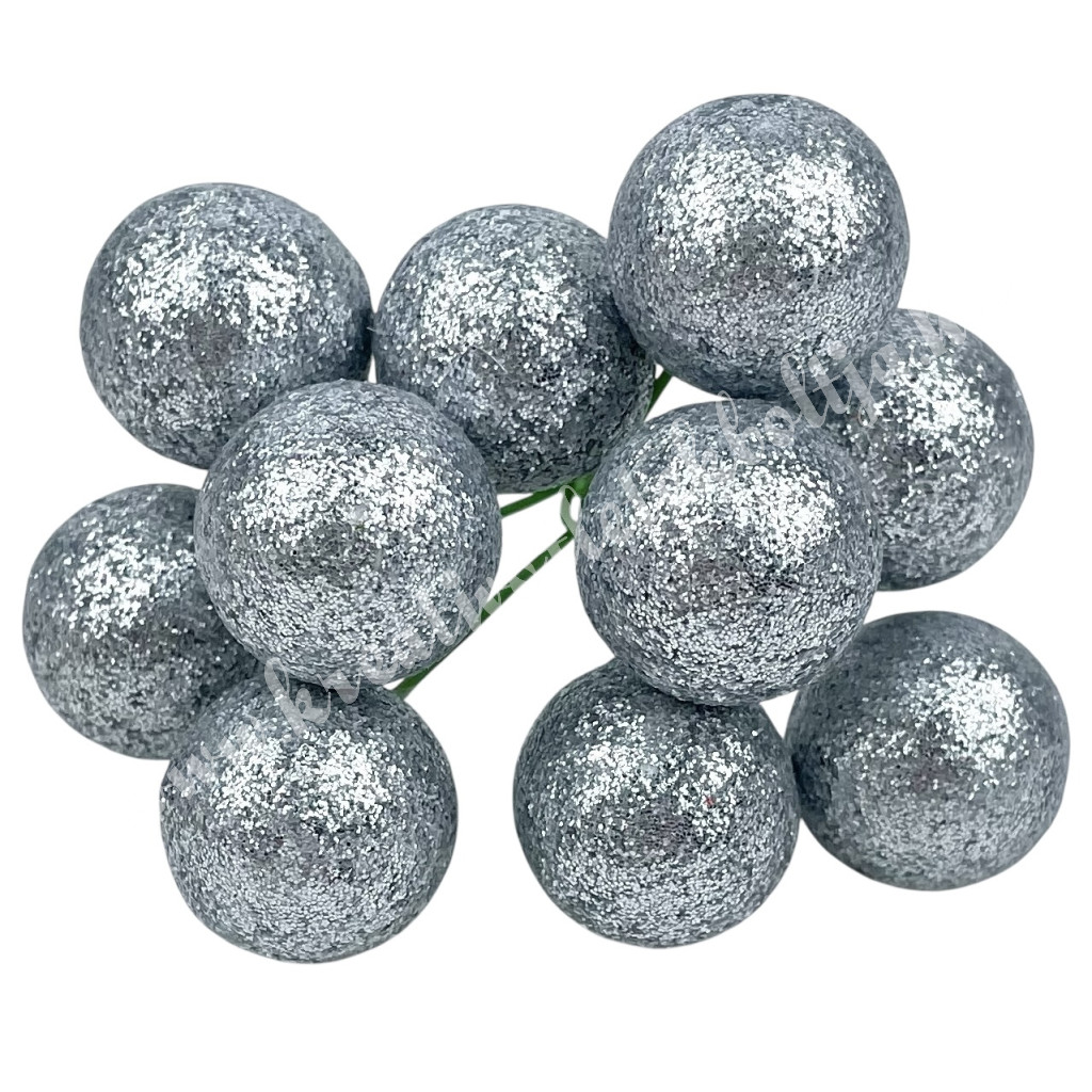 Betűzős csillámos hungarocell golyó, ezüst, 2 cm, 10 db/csokor