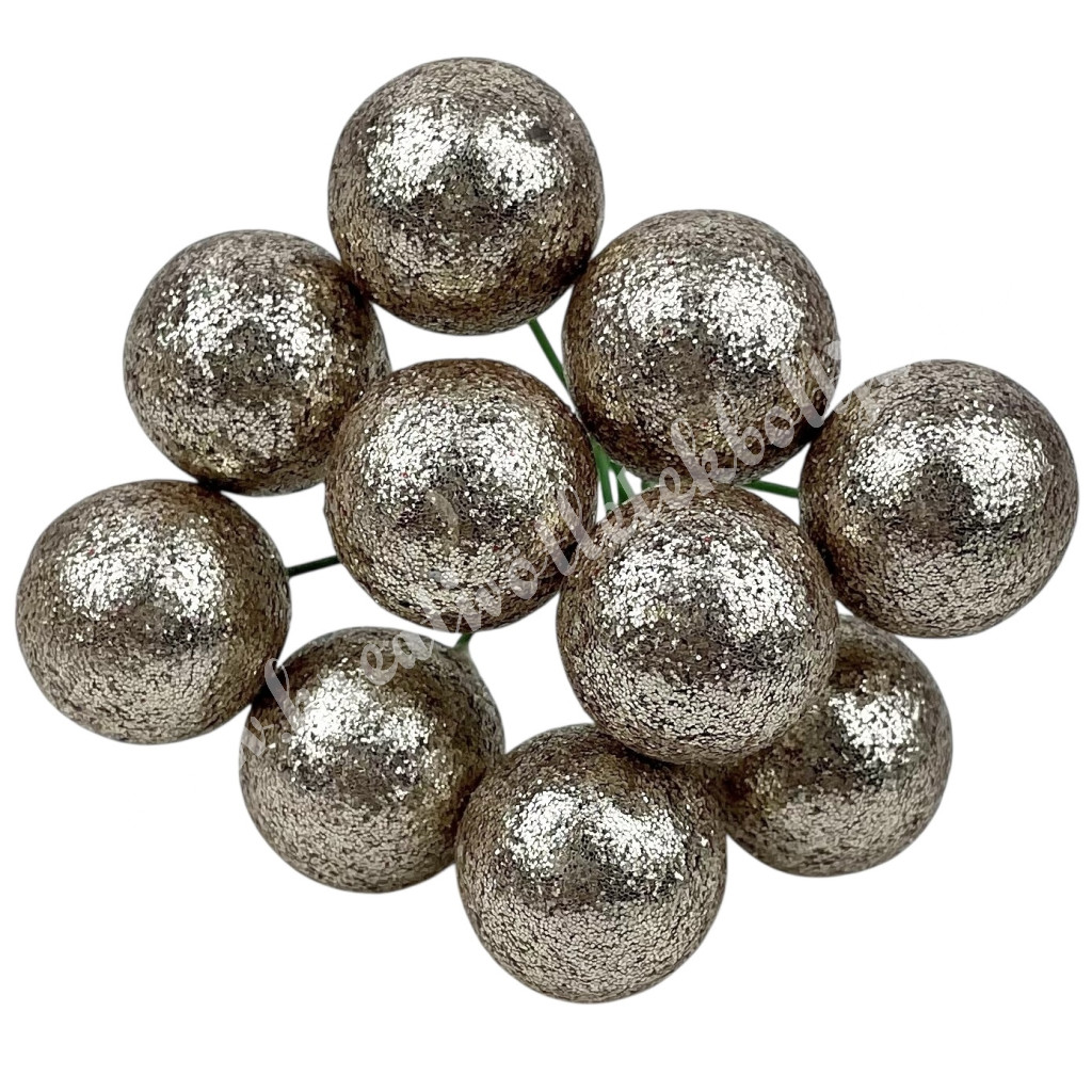 Betűzős csillámos hungarocell golyó, pezsgő, 2 cm, 10 db/csokor