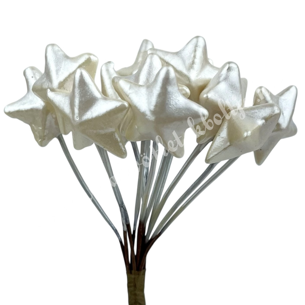 Betűzős hungarocell csillag, gyöngyház, 1,8x1,8 cm, 12 db/csokor