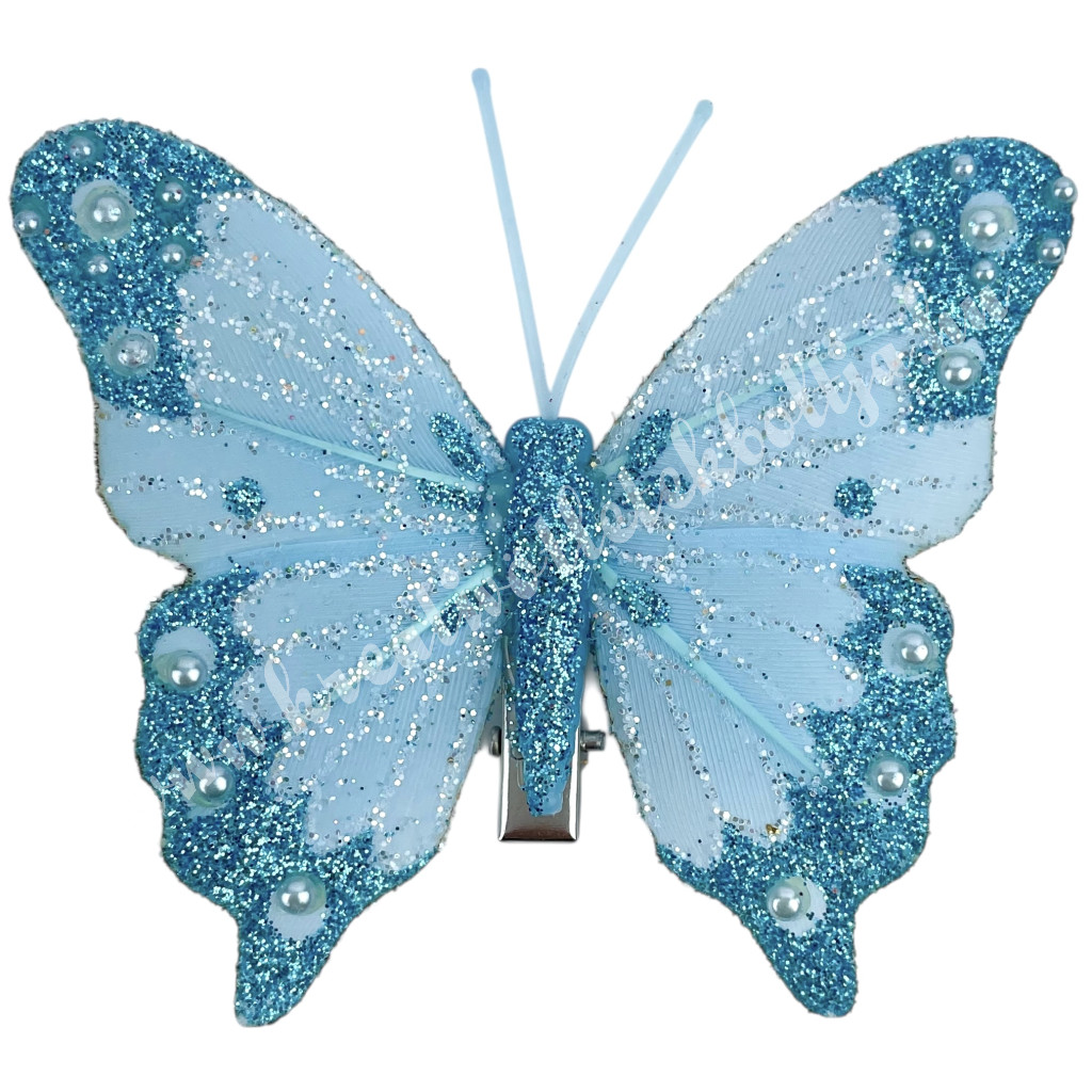 Csipeszes pillangó, csillámos, kék, 7,6x6,5 cm