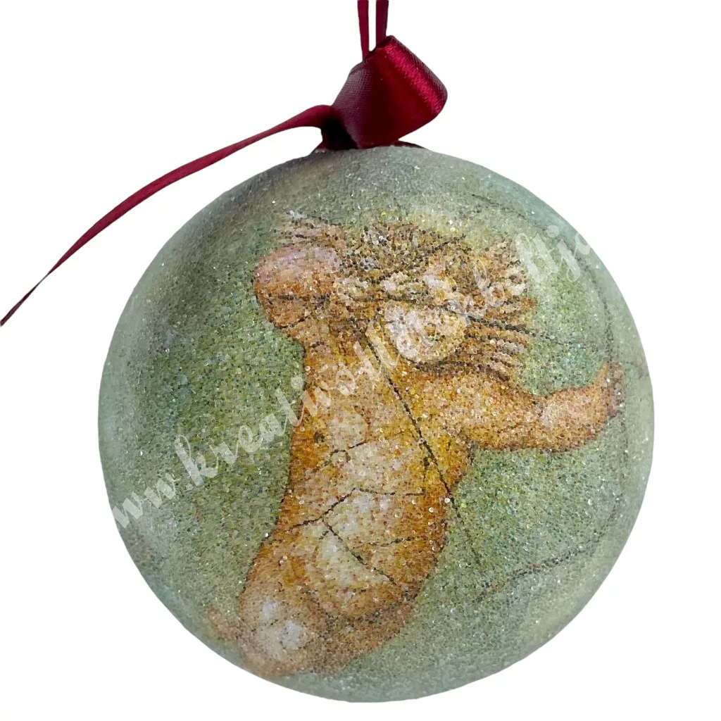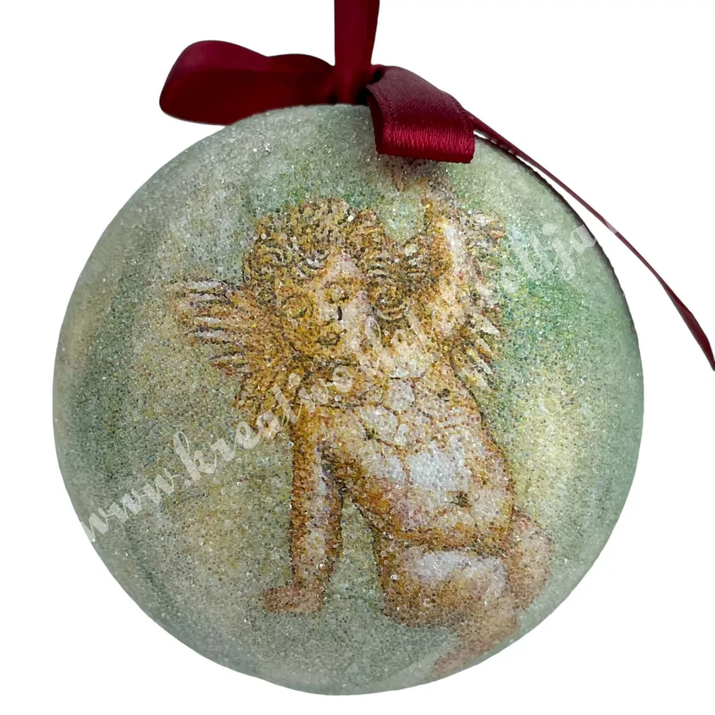 Karácsonyfa gömb, cukros, angyalokkal, 7 cm
