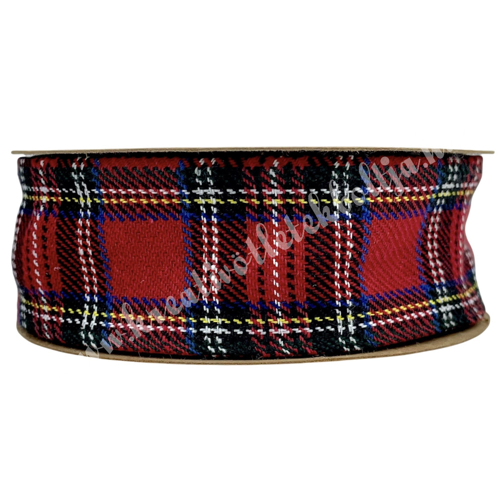 Karácsonyi szalag, kockás, drótos szélű, 4 cm (214)