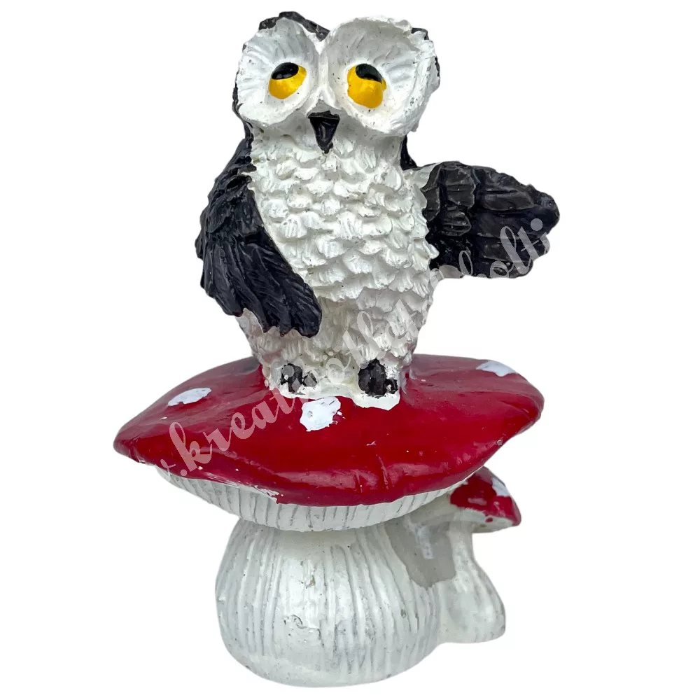 Polyresin bagoly gombán, 5x7 cm