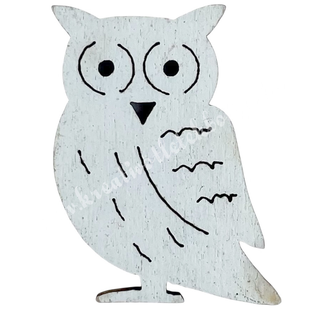 Ragasztható fa bagoly, fehér, 2,3x3 cm