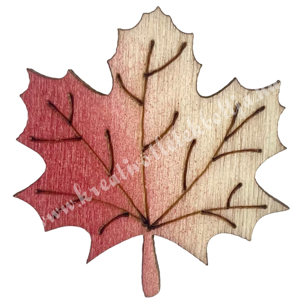 Ragasztható fa juharlevél, natúr-piros, 3x3 cm